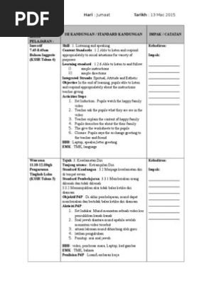 Daily Lesson Plan English Year 3 Week 3 Pdf Lesson Plan Educational Assessment